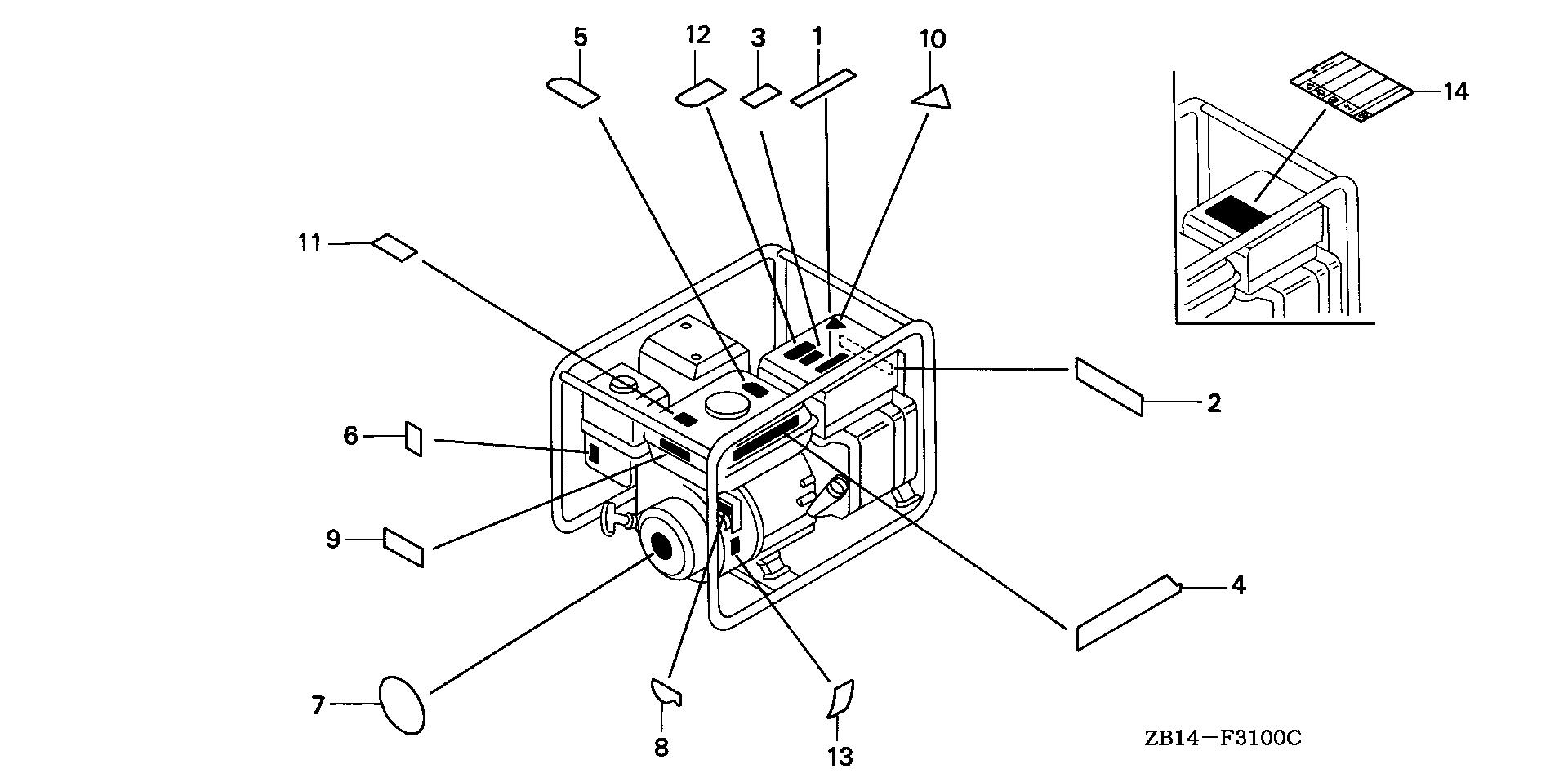 Generators EG EG1400 EG1400XK1 A/A EZCJ-1000001-1018788 LABELS - Aurora Rents